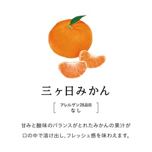 原材料名: みかん果汁 ( みかん (三ヶ日産))、砂糖、レモン汁、ブドウ糖/トレハロース、安定剤(増粘多糖類)