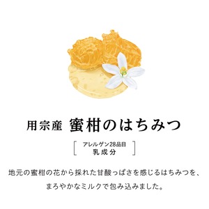 原材料名: 牛乳(生乳(静岡県産))、用宗産蜜柑のはちみつ、生クリーム、脱脂粉乳、砂糖、ブドウ糖/トレハロース、乳化剤、安定剤(増粘多糖類)